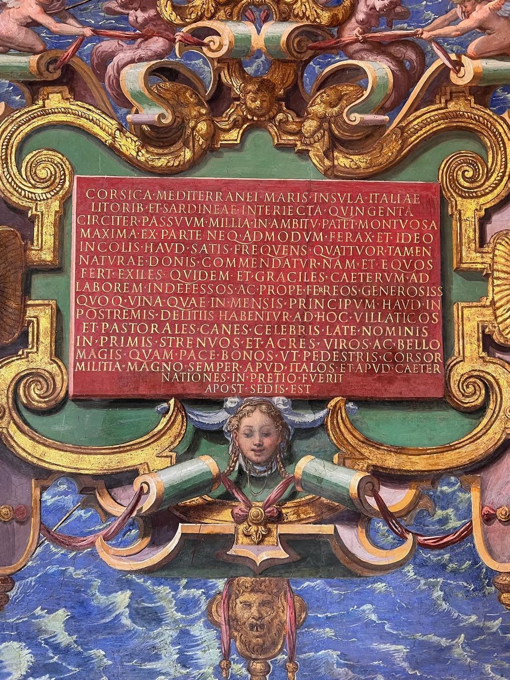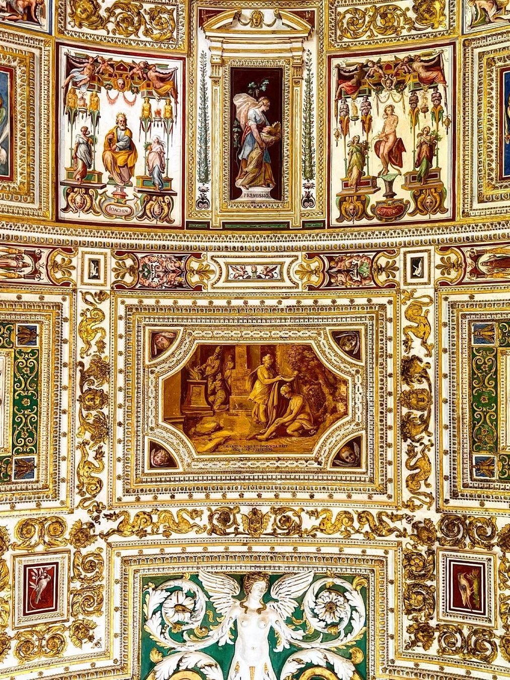 Die Decke ist vielleicht noch schöner anzusehen. Besonders bemerkenswert ist, dass die Figuren in den Deckenfresken direkt mit der geografischen Lage der Karten auf beiden Seiten in Verbindung gebracht werden können.