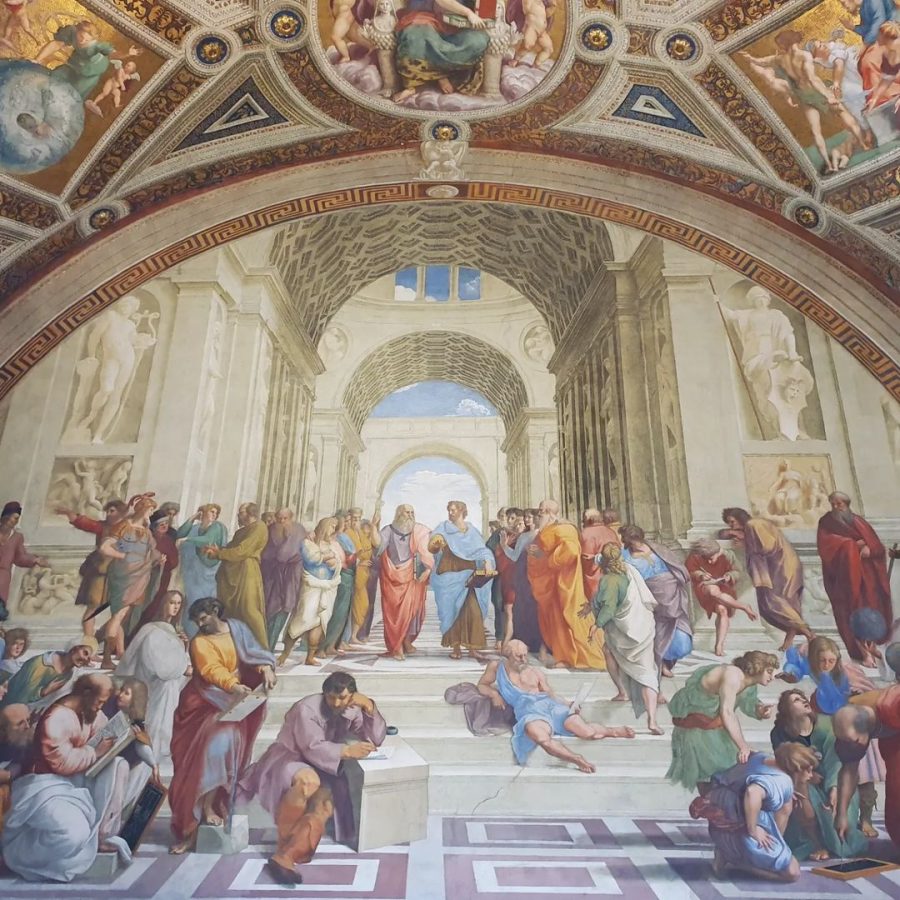 Das Besondere an diesen Räumen ist, dass sie mit Meisterwerken des berühmten Renaissancekünstlers Raffael dekoriert sind. Einst waren sie die Privatgemächer von Papst Julius II. und später auch von Papst Leo X. Die vielen Fresken erzählen wunderschöne Geschichten.