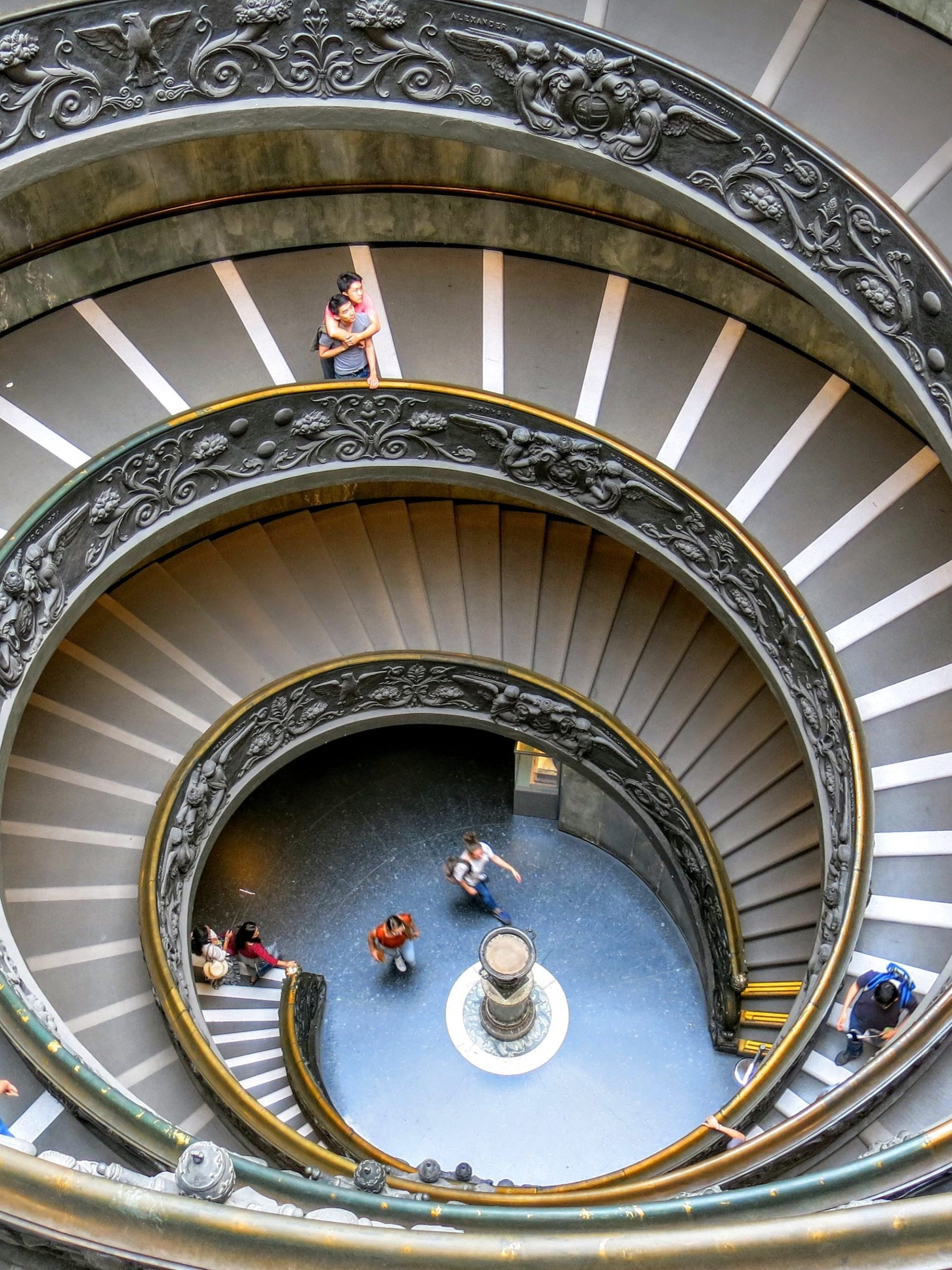 Die Wendeltreppe ist international bekannt als die Scala Regia. Diese einzigartige Treppe wurde einst vom italienischen Architekten Gian Lorenzo Bernini entworfen und war im 17. Jahrhundert vollständig fertiggestellt. Die Wendeltreppe ist ursprünglich ein beeindruckender Zugangsweg zur Petersdom, vom Apostolischen Palast aus. Das Ganze besteht aus 2 Teilen, die durch eine spiralförmige Bewegung einen wunderschönen visuellen Effekt erzeugen.