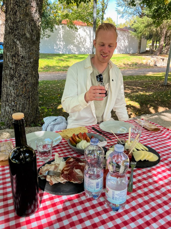 Es wird ein ‚Sheperd’s Breakfast‚ genannt, weil es aus lokalen Produkten besteht, die Schafhirten (früher) mitnahmen, wenn sie unterwegs waren. Zum Beispiel Pane Carasau, sardisches Brot, das von ihren Frauen gemacht wurde. Du erhältst aber auch köstliche lokale Käsesorten und Wurstwaren.