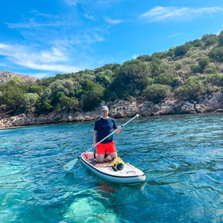 Du kannst auch mit dem SUP, Stand-Up Paddle, Delfine in der Golfo Aranci von Sardinien beobachten. Wir haben das selbst gemacht und fanden es echt super! Lies hier unsere Erfahrung über das SUPen mit Delfinen.